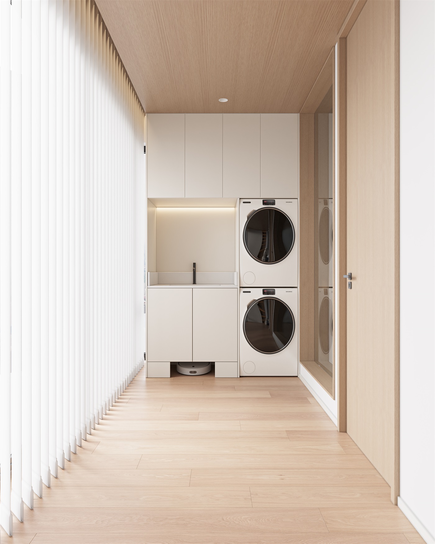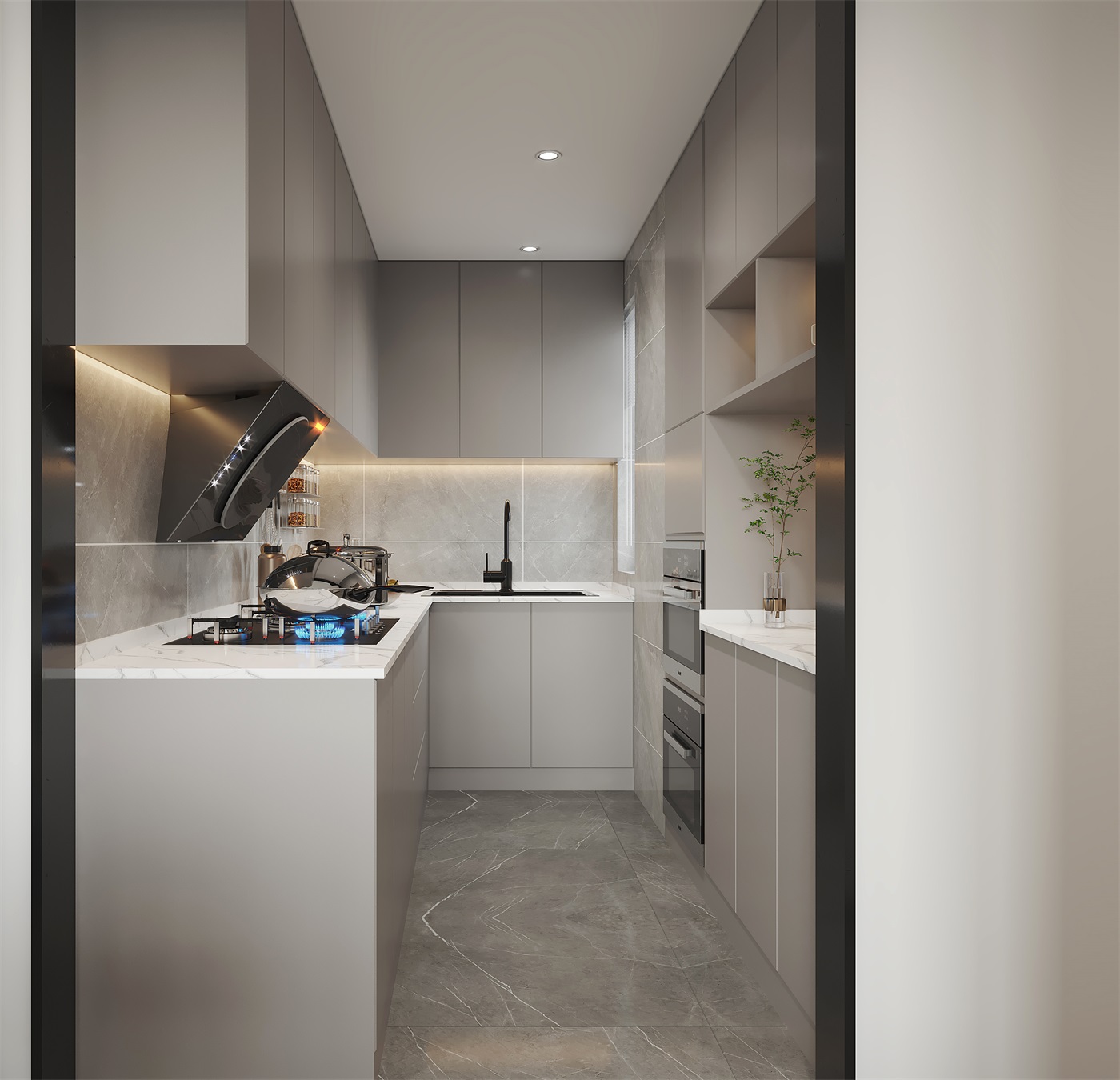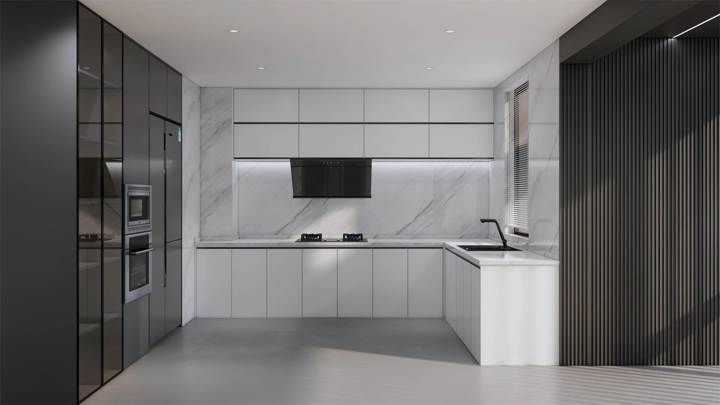 表面采用進口pp膜,外觀、顏色、質感可媲美傳統建材,花色尺寸均可定制; 吊頂、墻面、柜體、室內門一體成色,整體成型,無縫拼裝,全屋整裝可實現空間感,整體感,高級感。